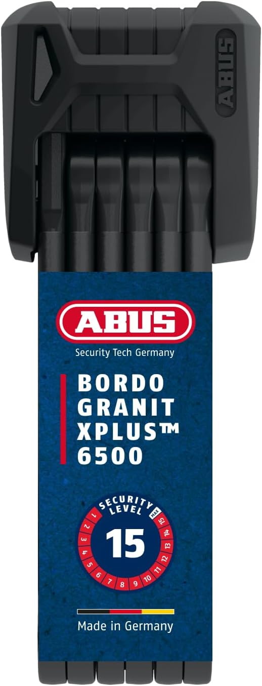 ABUS Bordo Granit 6500: ABUS Faltschloss Bordo Granit XPlus 6500/85 ST mit Schlosstasche – Fahrradschloss aus gehärtetem Stahl – ABUS-Sicherheitslevel 15 – 85 cm – Schwarz